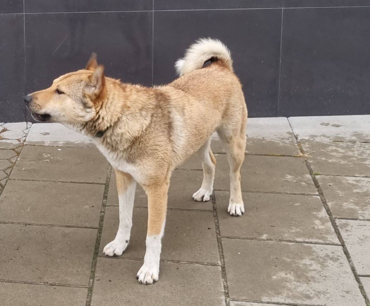 Це Юлій — молодий собака, який опинився на вулиці. Наразі його підгодовують мешканці нашого житлового комплексу, але як і всі